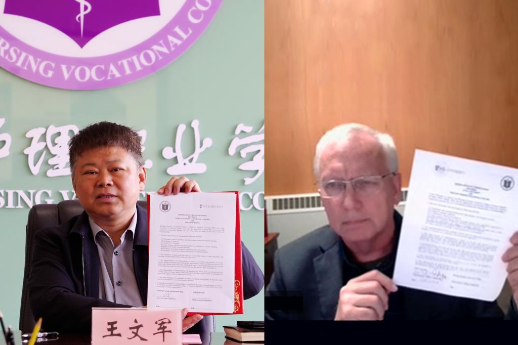 潍坊护理职业学院与阿维拉大学领导线上合影