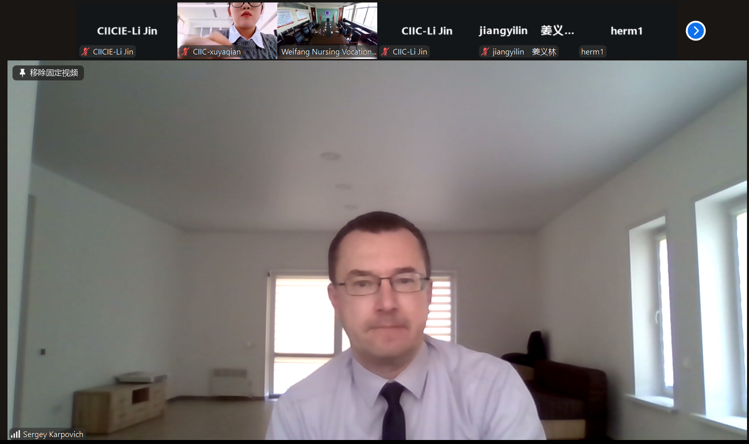 为扎实推进“白俄罗斯—岐黄学堂(海虹白俄)”建设,助力“按摩保健技术员”专业标准制定,2025年11月6日,我院应邀参加了“面向白俄罗斯输出中国优质专业标准、课程标准、教学资源、教学装备项目”专业会议。白俄罗斯共和国教育部职业教育研究院行业研究室主任卡尔波维奇·谢尔盖·列昂尼多维奇、该院驻华代表付连康、代文琦,山东省职业技术教育学会副秘书长姜义林参加会议。我院国际交流与合作中心、中医系相关人员参会。